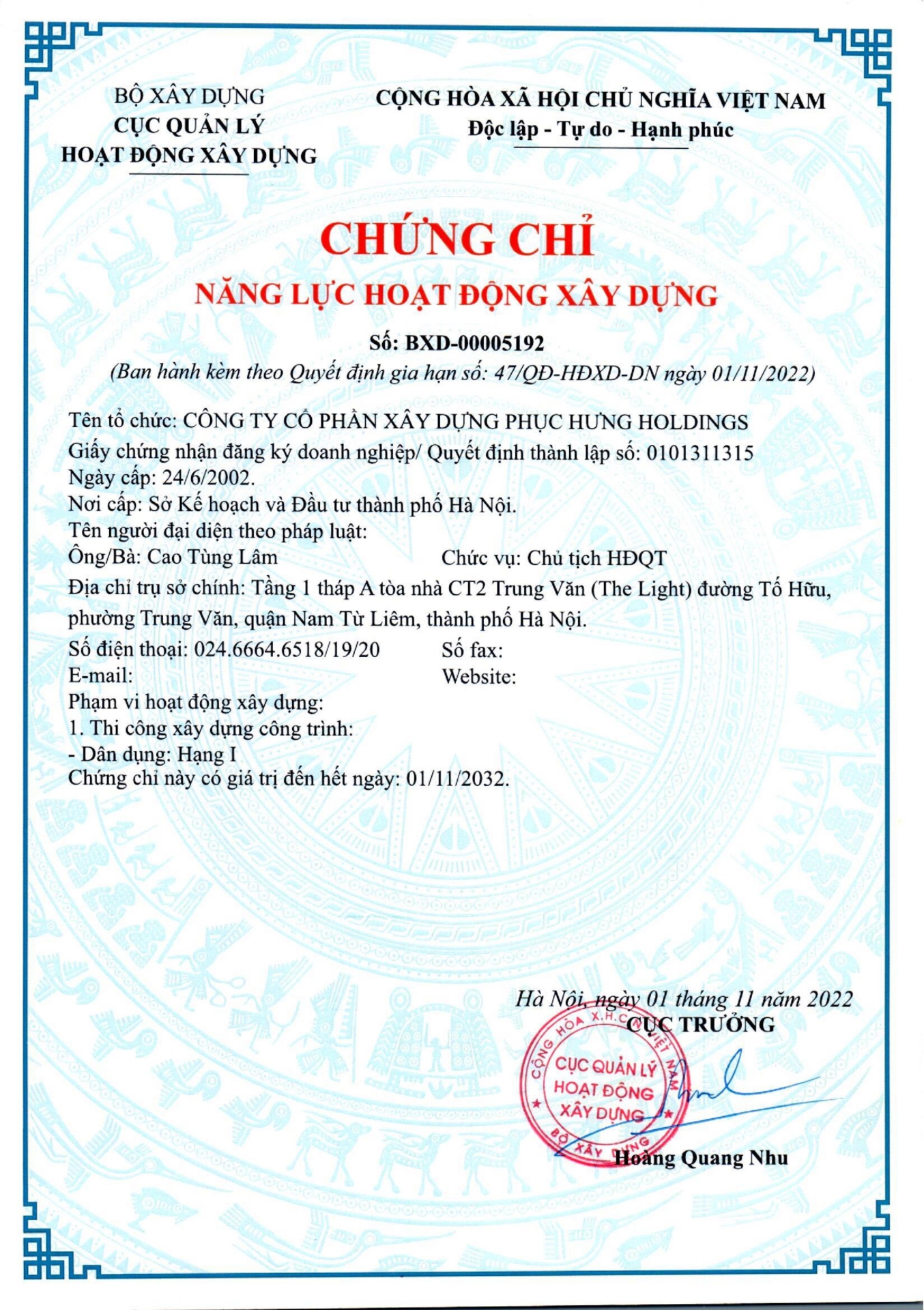 01.11.2032 - CC HĐNL Dân dụng hạng 113:16 - 05/01/2024Chứng chỉ và chứng nhận, Giới thiệu về Cơ điện Phục Hưng, Thành tựu, Chia sẻ: